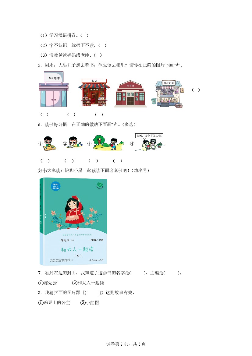 小学 25新一年级上册语文快乐读书吧 读书真快乐课后作业(基础)