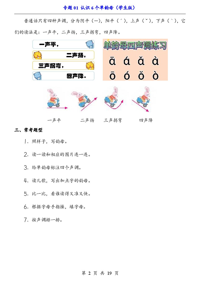 首页 > 全部 > 拼音练习 > 25新【一上语文】拼音专题-专题01 认识6个单韵母(知识+训练)