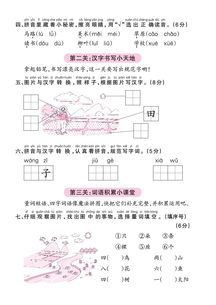 小学 25秋一上语文期中综合测评卷(一)含答案5页