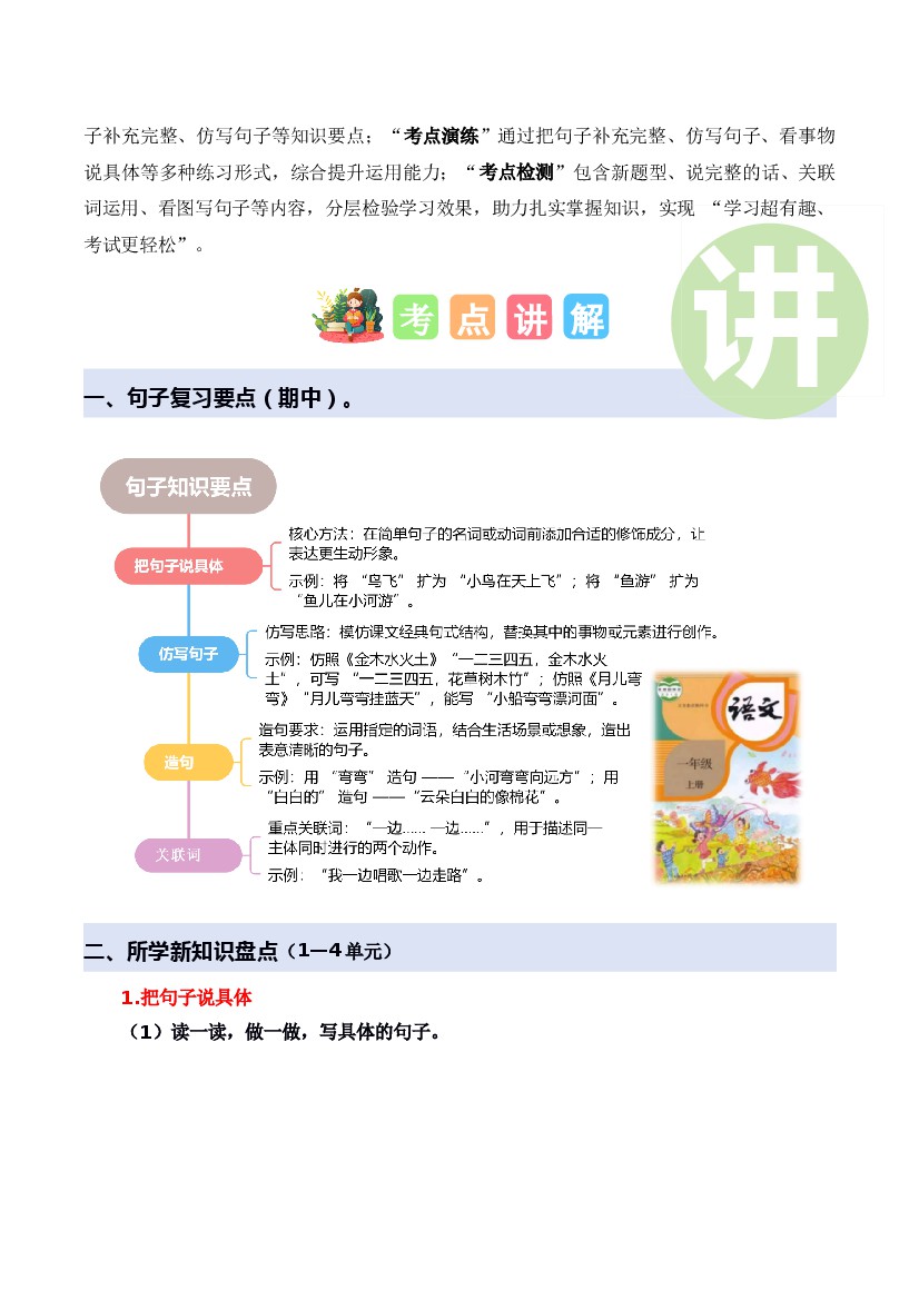 首页 > 全部 > 期中专项 > 专题 04 把句子说具体、仿写句子、造句、关联词(期中专项训练)一年级语文上学期(统编版·新教材)