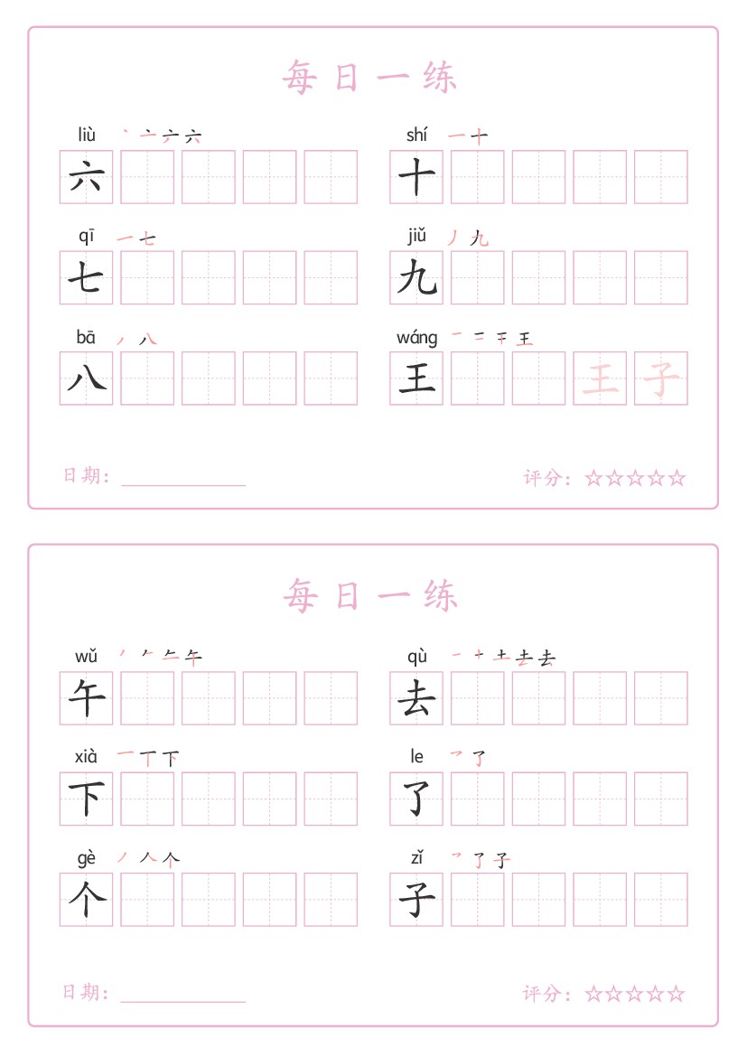 首页 > 全部 > 生字字帖 > 25秋一年级上册语文写字表每日一练字帖(5字版)9页