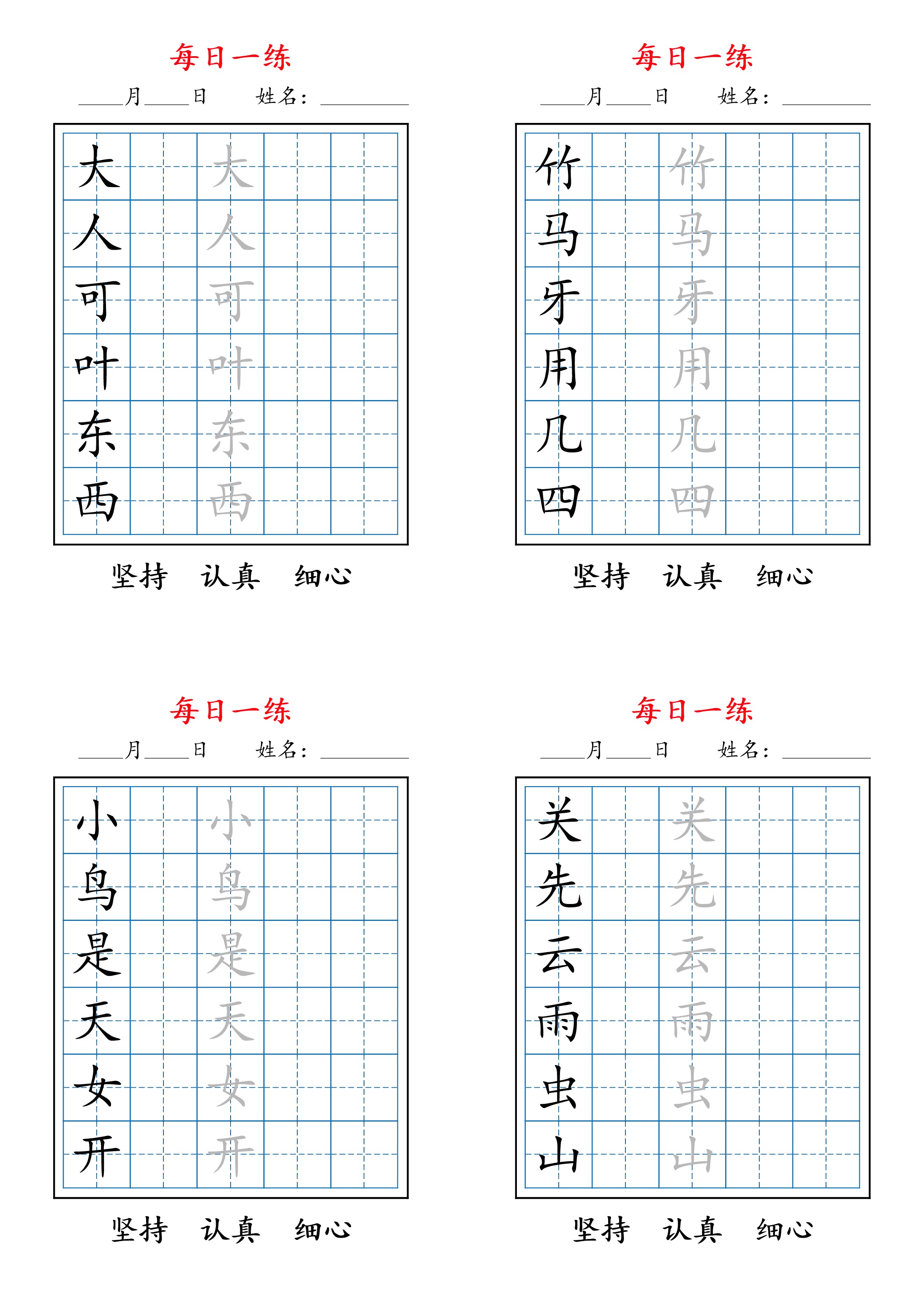 首页 > 全部 > 生字字帖 > 2025秋新一上语文暑假每日一练字帖6字