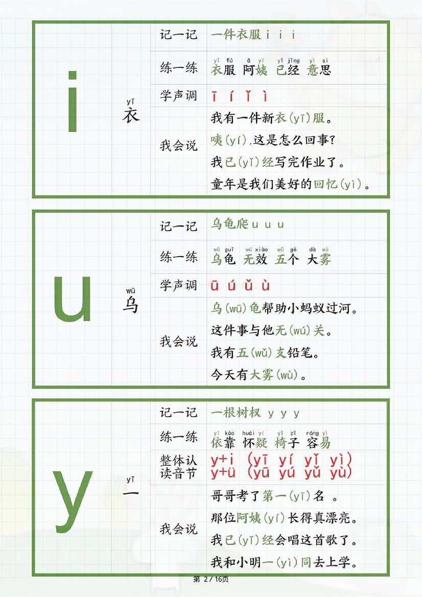 一年级语文上册《汉语拼音声母韵母表47个拼读字贴》(16页)