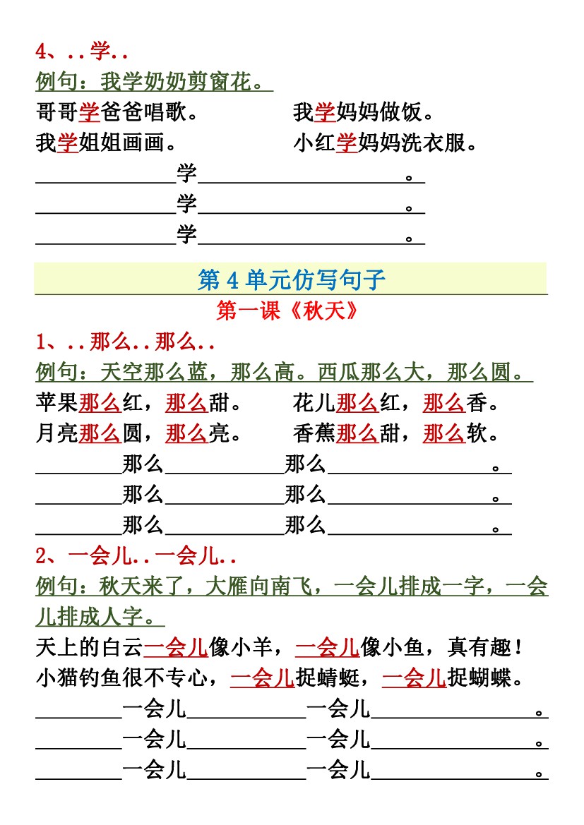 首页 > 全部 > 语句专项 > 一年级上册语文必考必背仿写句加练习子+