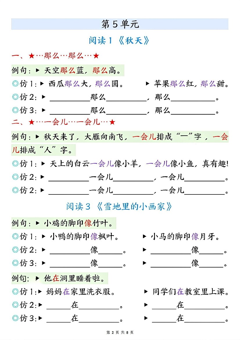 一年级(上)语文 句子仿写专项练习