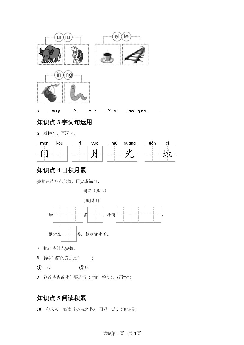 小学 25新一年级上册语文第四单元 语文园地课后作业(提升)