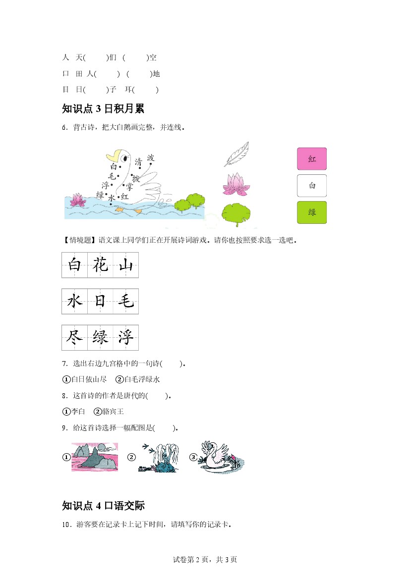 首页 > 全部 > 语文园地 > 25新一年级上册语文第一单元 语文园地课后作业(基础)
