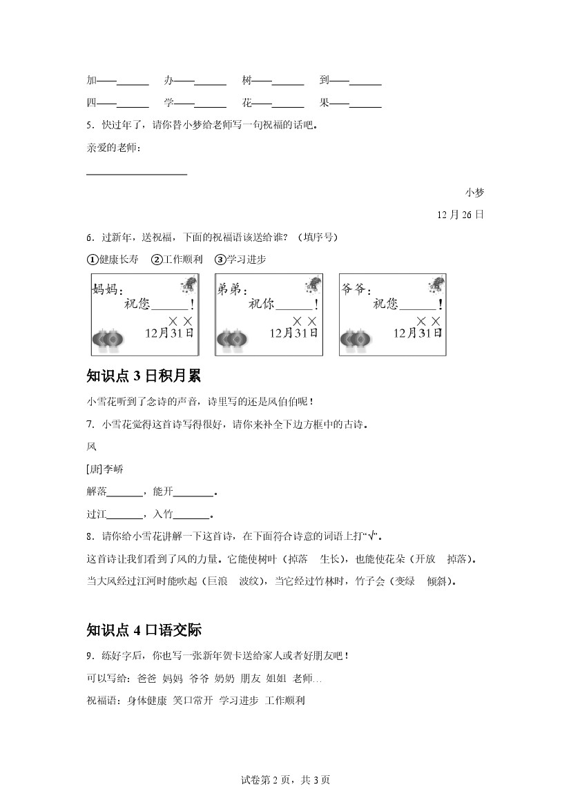 首页 > 全部 > 语文园地 > 25新一年级上册语文语文园地八 课后作业(提升)