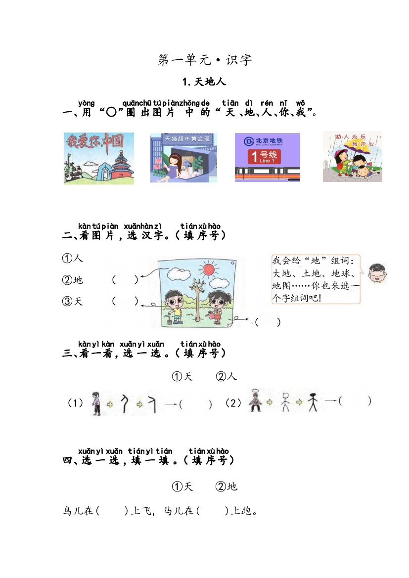 一年级(上)语文 每课学习单