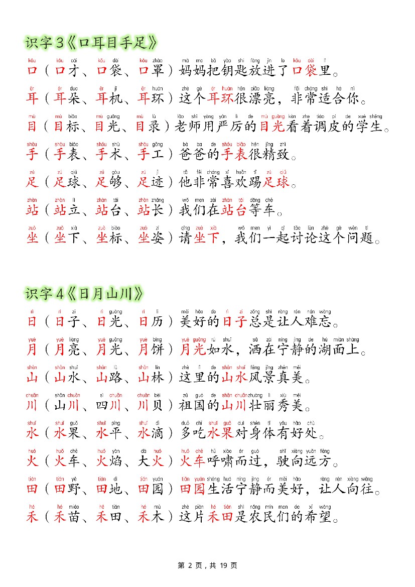 小学 25秋新版一年级上册语文《每日晨读彩色版》(生字拼音组词造句)19页