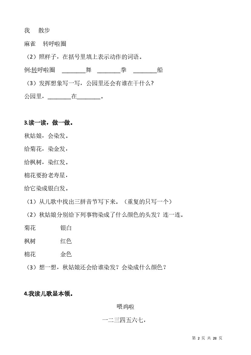首页 > 全部 > 阅读理解 > 一(上)阅读专项训练习题50道