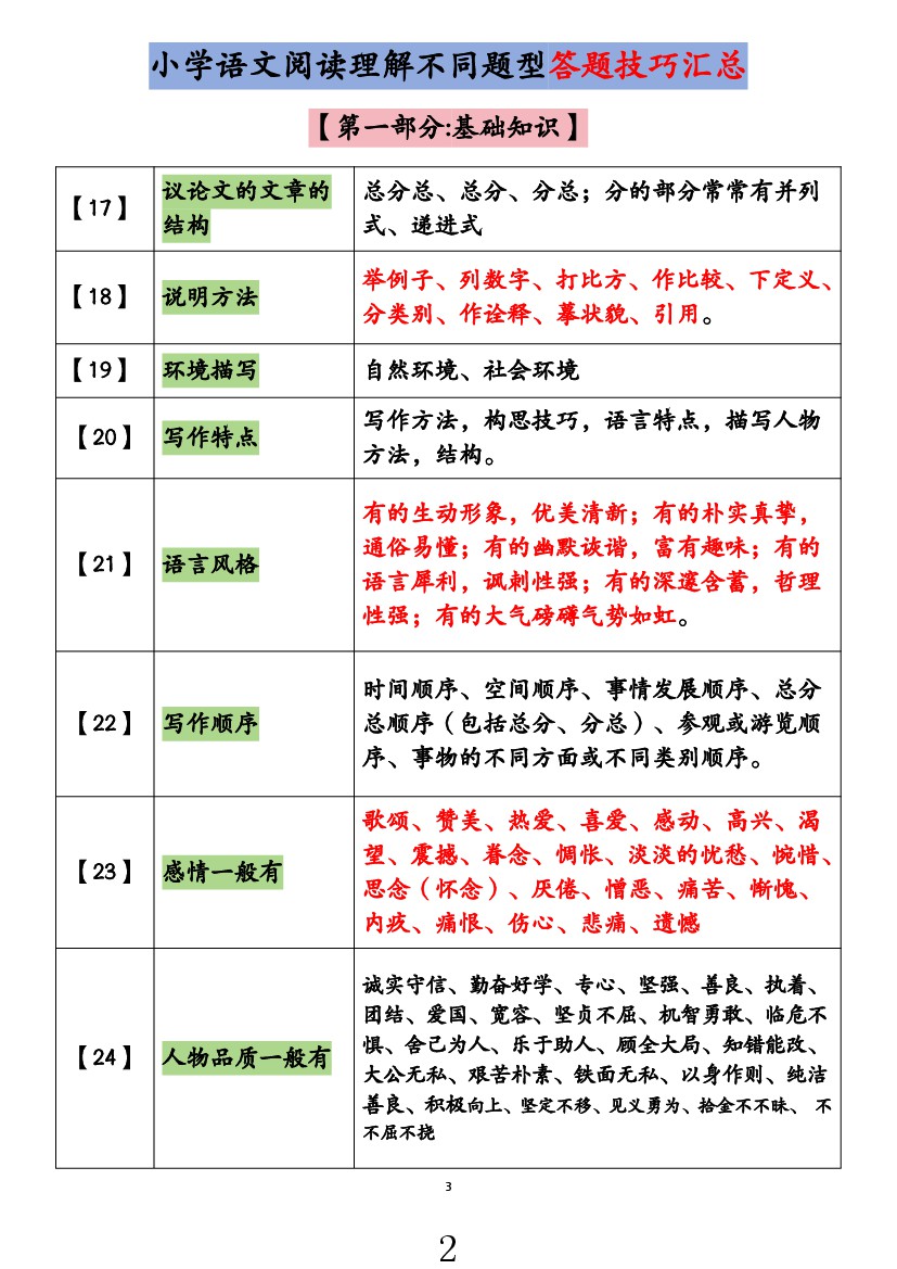 小学 新一上语文阅读理解不同题型答题技巧汇总