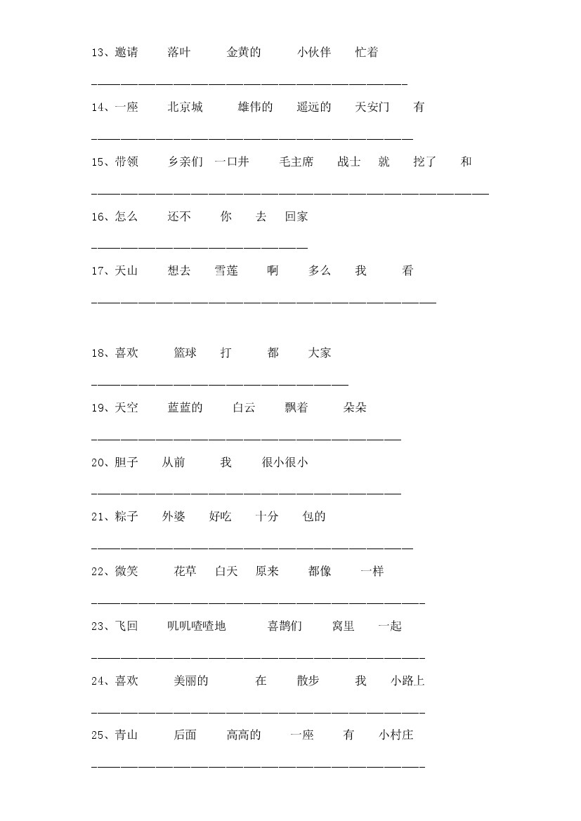 首页 > 全部 > 专项练习 > 一年级(上)语文 连词成句专项练习