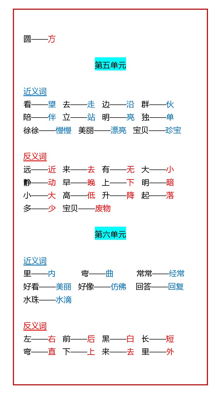 首页 > 全部 > 专项练习 > 【2025秋新版】一年级语文(上)必考重点 近义词+反义词全汇总