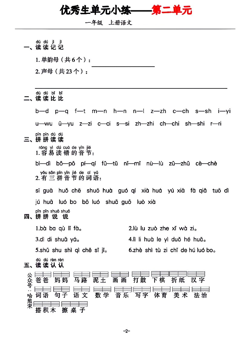 首页 > 全部 > 专项练习 > 一年级上册语文1-7单元基础小练习