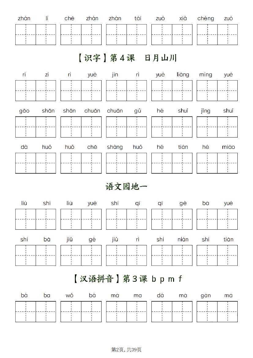 首页 > 全部 > 专项练习 > 一年级上册1-8单元看拼音写词语