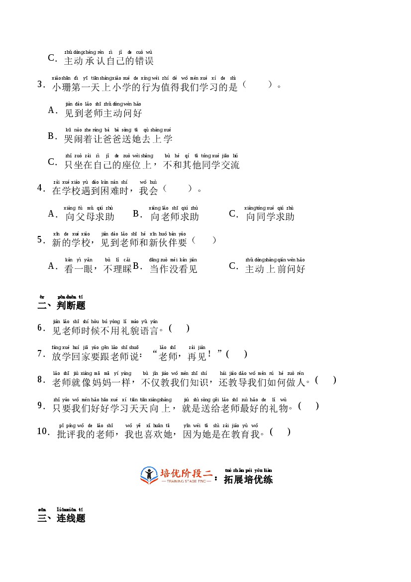 首页 > 全部 > 课时练习 > 第5课 老师,您好!-一年级上册道德与法治分层作业