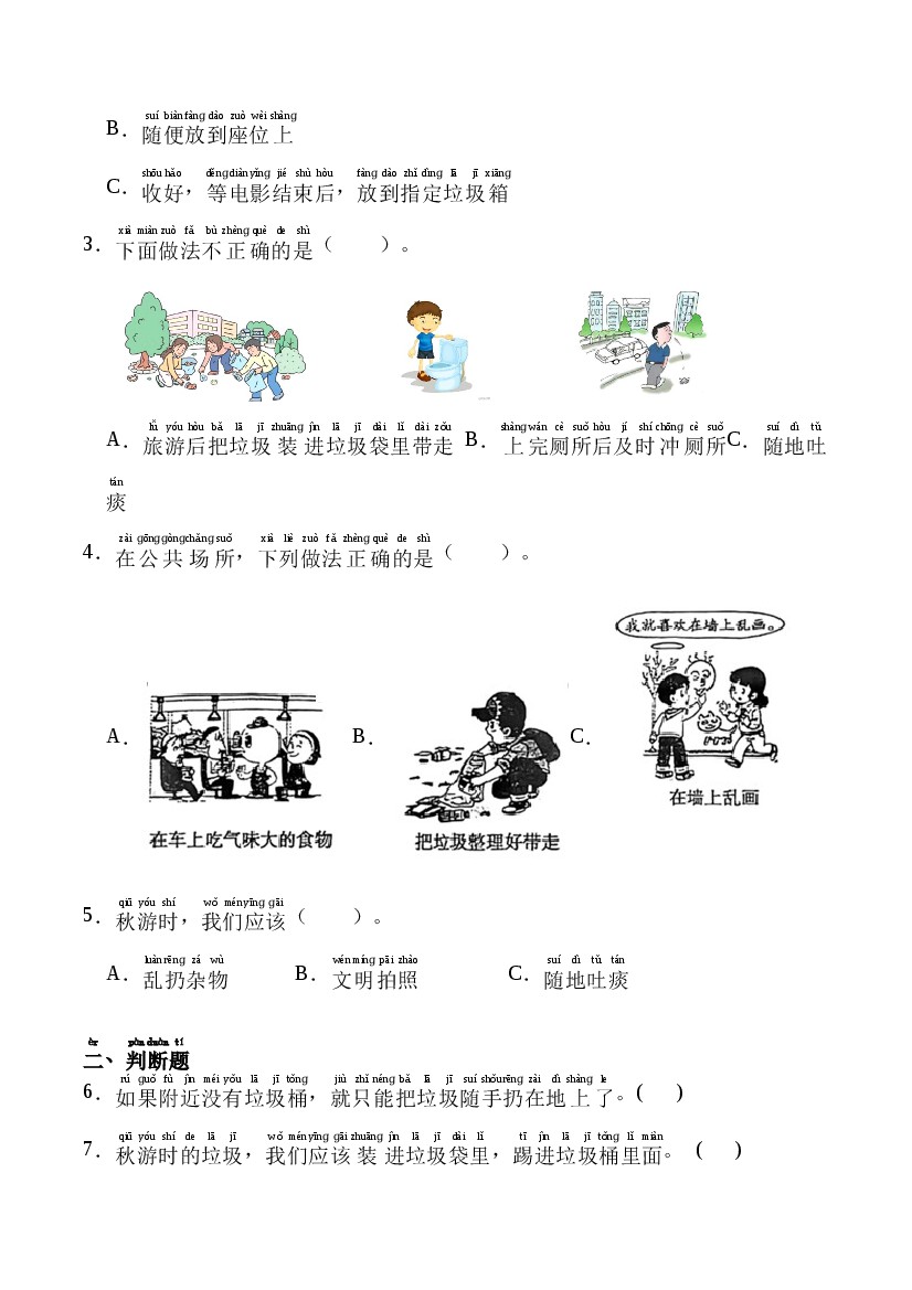 第15课 我们不乱扔-一年级上册道德与法治分层作业