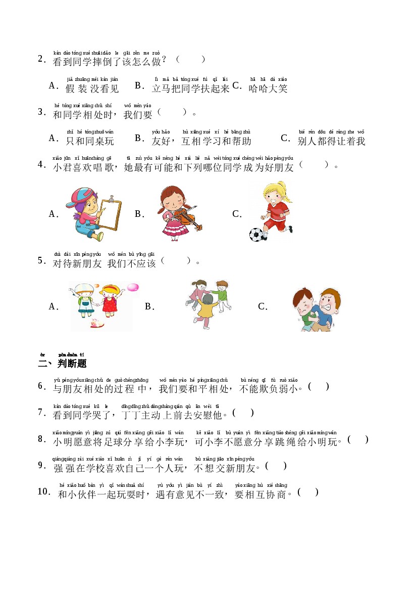 第6课 拉拉手,交朋友-一年级上册道德与法治分层作业