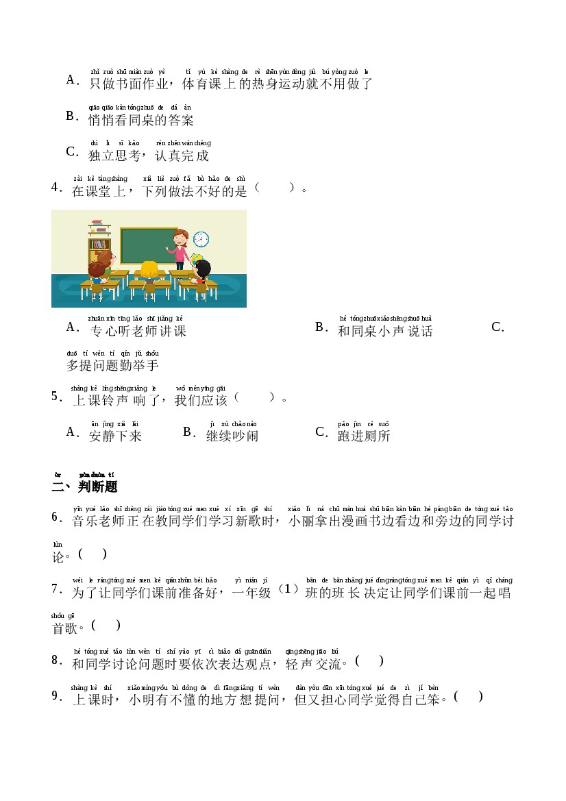 首页 > 全部 > 课时练习 > 第7课 上课了,好好学-一年级上册道德与法治分层作业