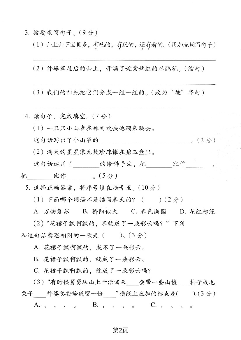 首页 > 全部 > 单元测试 > 25年二年级上册语文第三单元过关检测卷