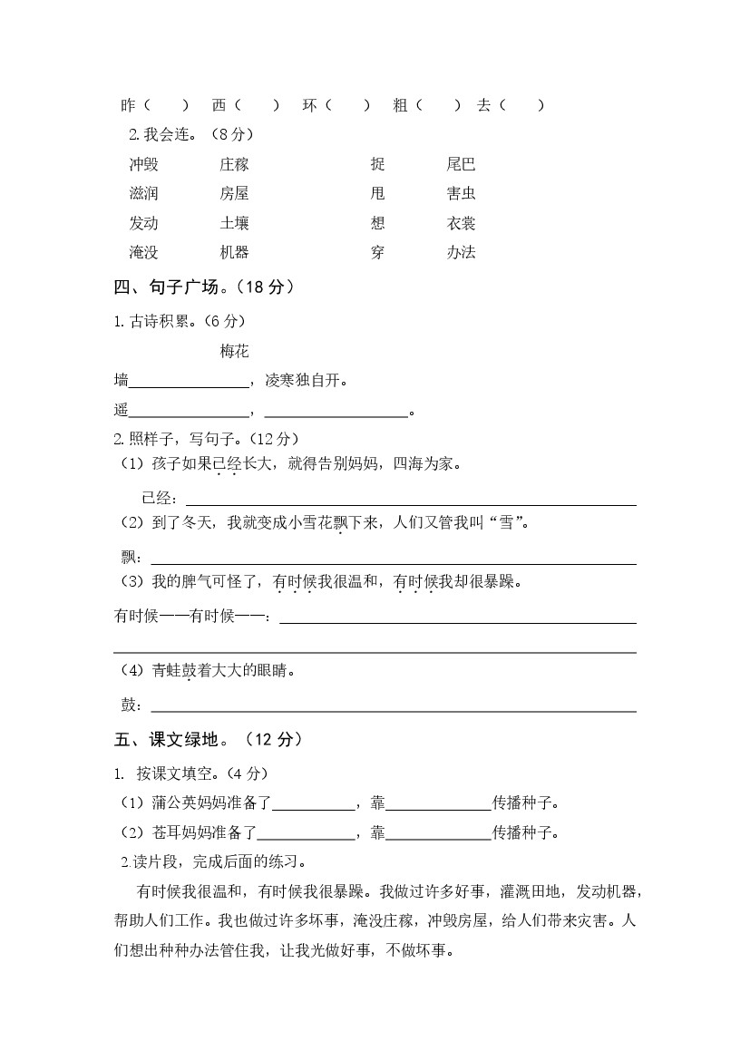 小学 25年语文小学二年级上册第一单元检测题(有答案)
