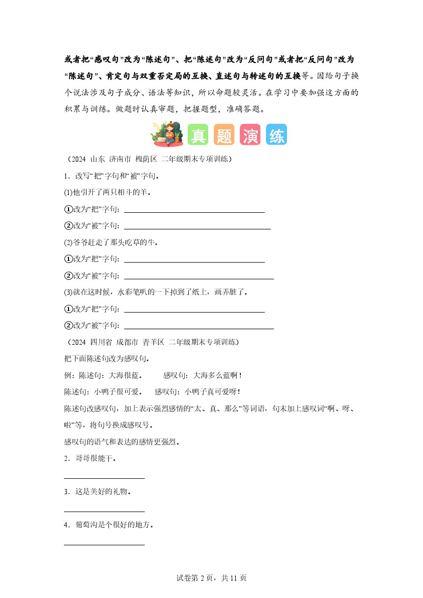 专题07 给句子换说法-2025年二年级语文寒假专项提升(统编版)