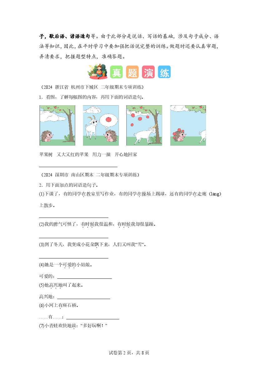 专题05 造句和排序-2025年二年级语文寒假专项提升(统编版)
