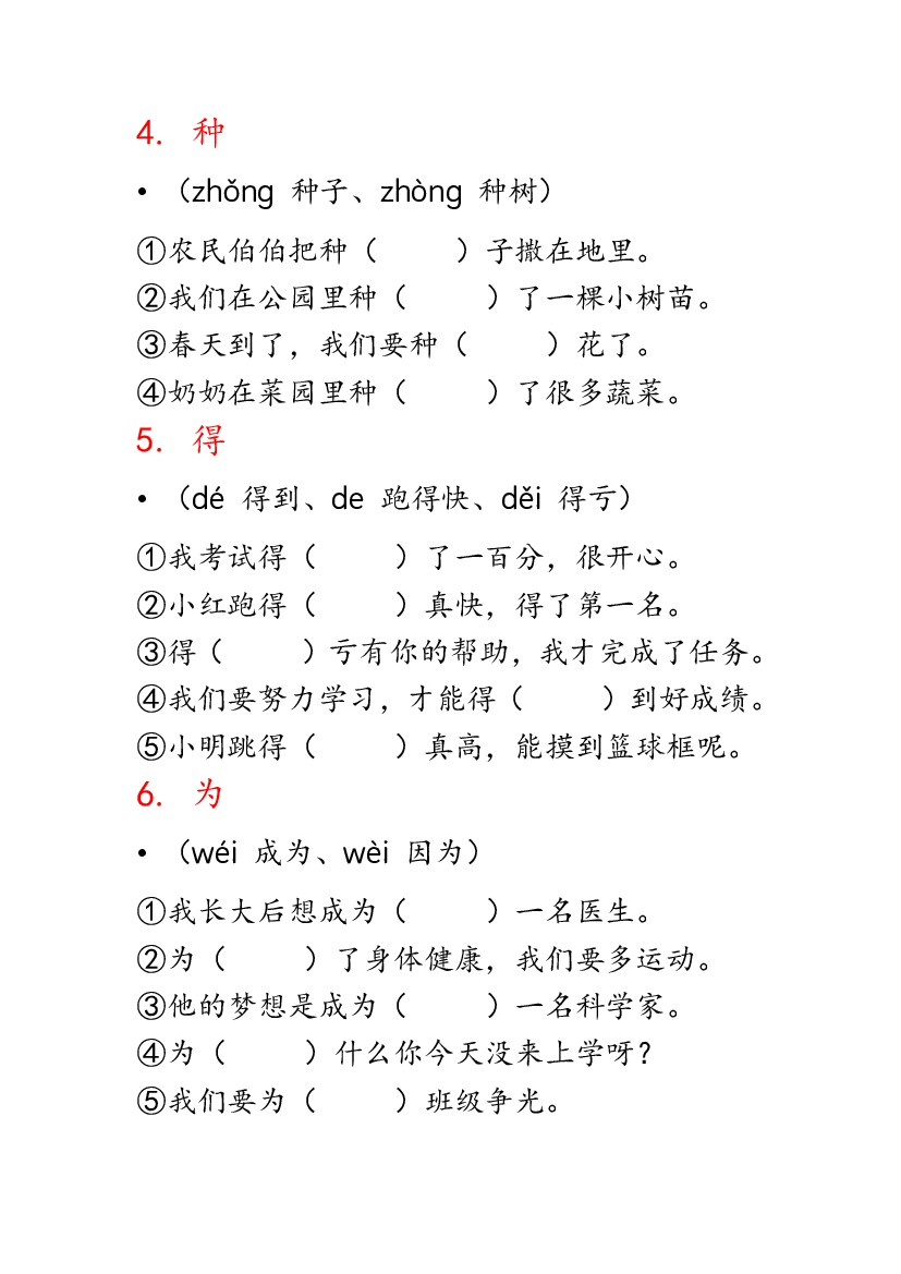小学 二上语文必会多音字专项练习(13页)