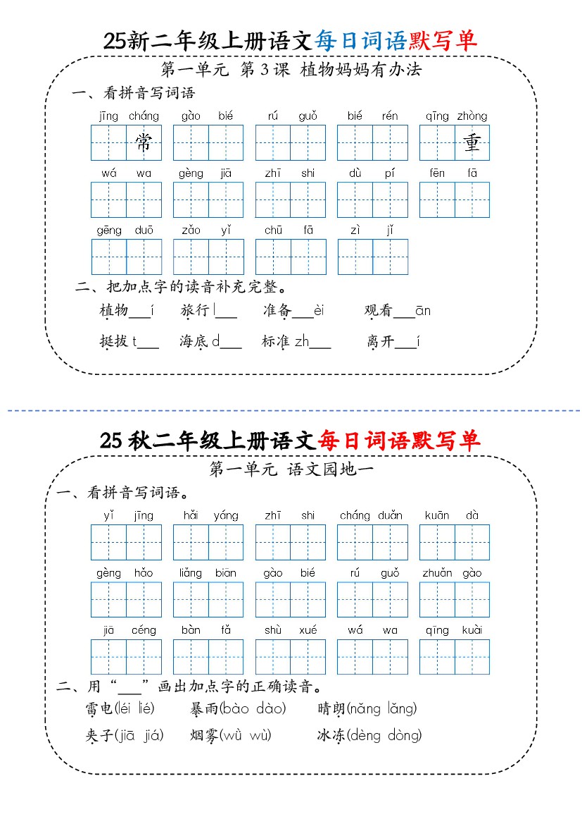 首页 > 全部 > 基础字词 > 25新二上语文每日词语默写单(含答案22页)