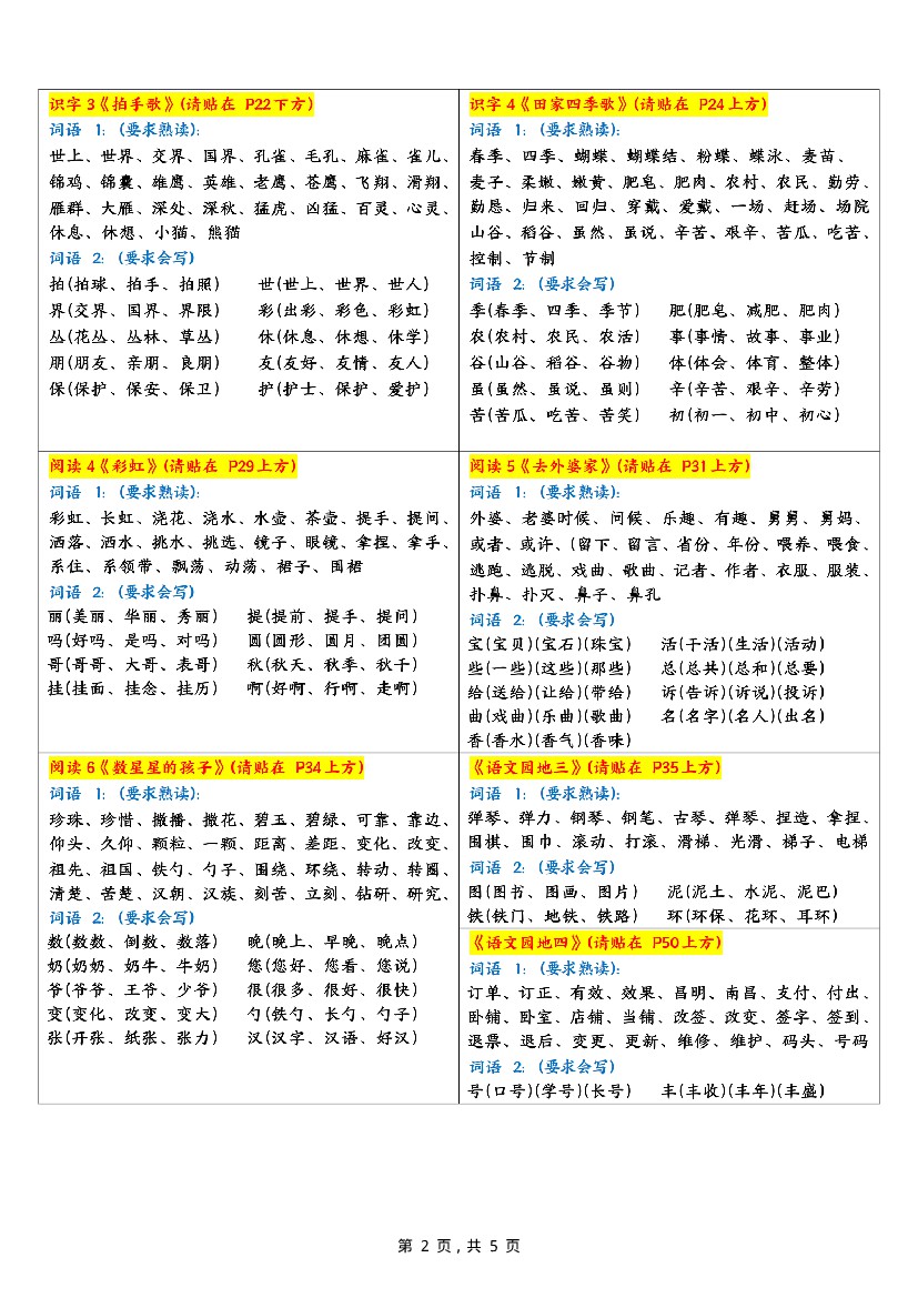 首页 > 全部 > 随堂课贴 > 新二上语文每课重点字词课课贴(5页)