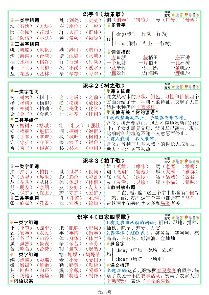 首页 > 全部 > 随堂课贴 > 25秋新版二上语文课课贴【知识速记】9页