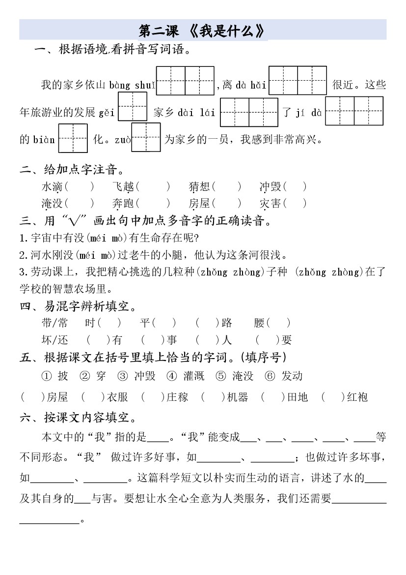 二年级上册语文全册一课一练