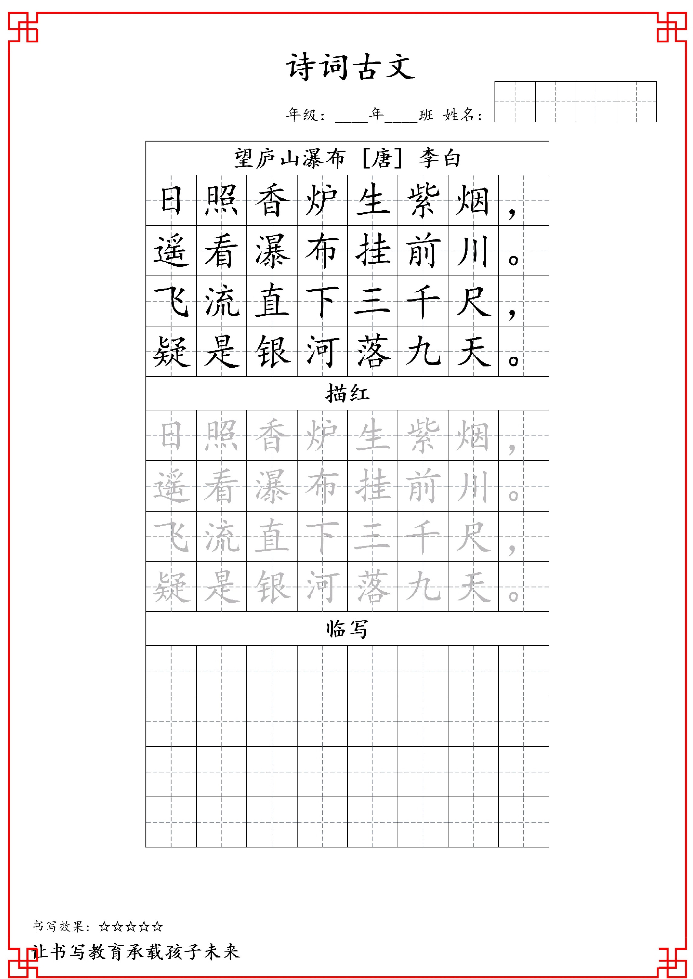 小学 古诗字帖-二年级古诗词字帖-二上语文