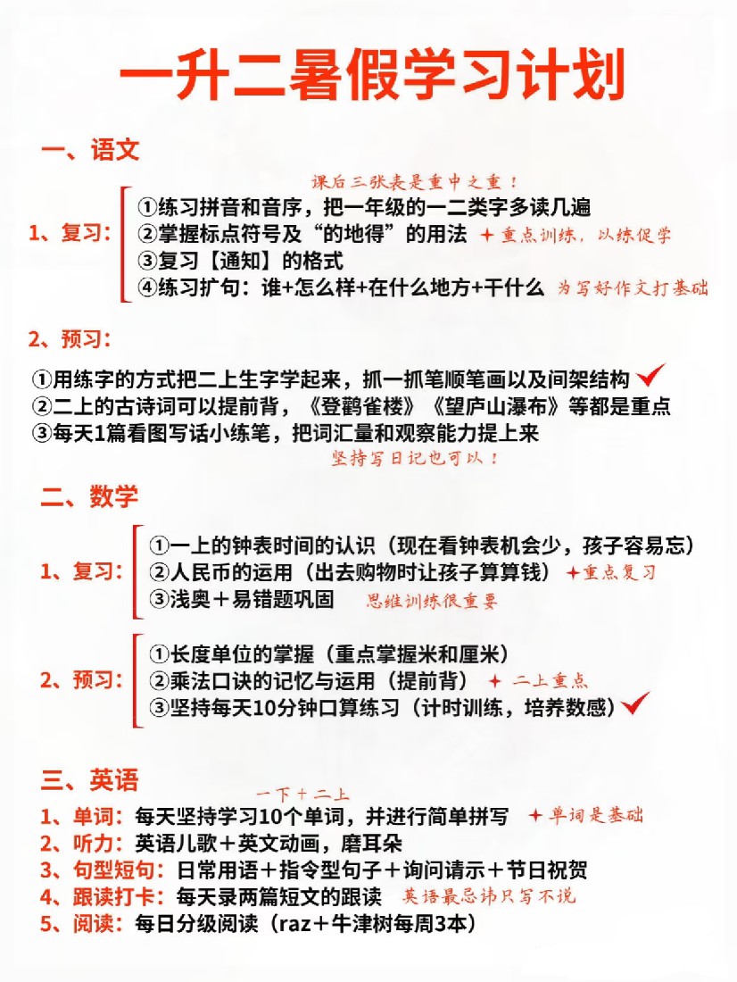 首页 > 全部 > 假期练习 > 一升二暑假学习计划