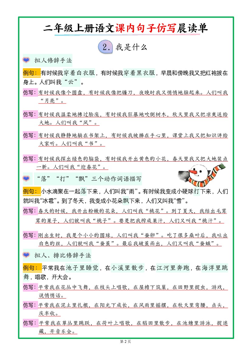 小学 新二上语文课内句子仿写晨读单(18页)