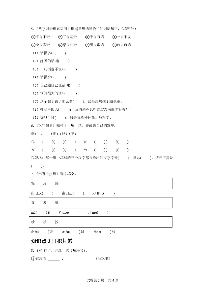 小学 25新二年级上册语文第六单元 语文园地 课后作业