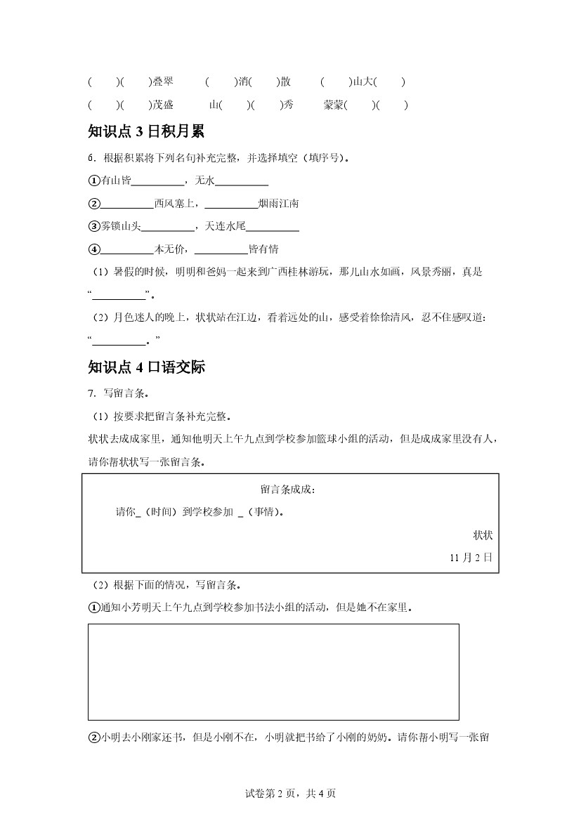 小学 25新二年级上册语文第四单元 语文园地课后作业