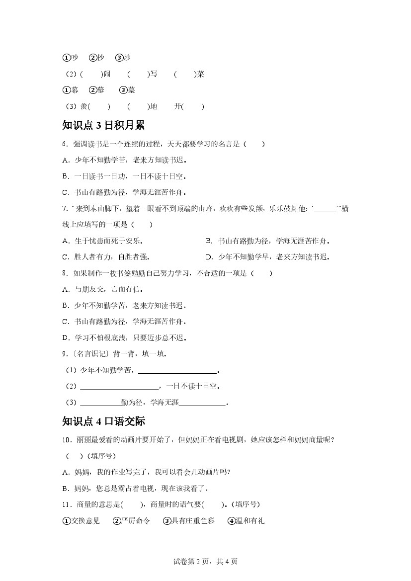 小学 25新二年级上册语文第五单元 语文园地课后作业