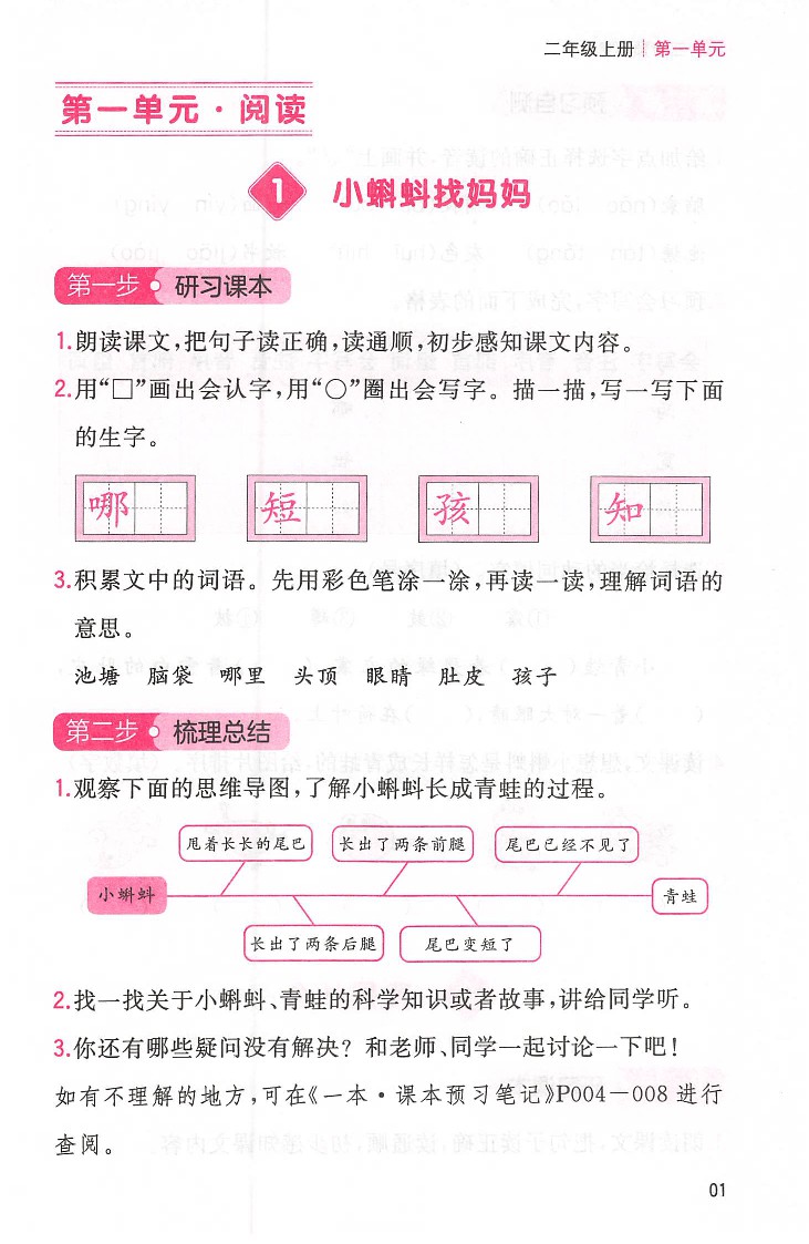 小学 二年级语文人教版上册25秋《课本预习笔记》预习单 习题