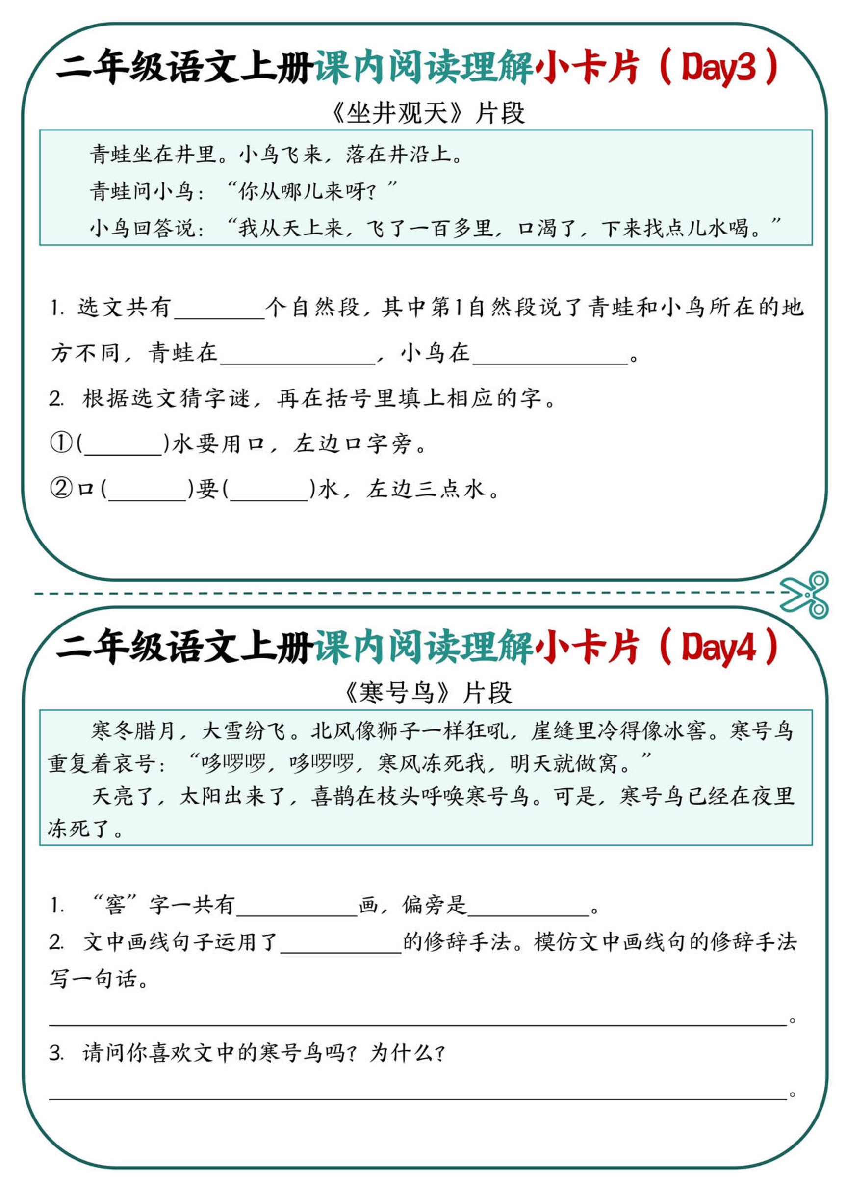 首页 > 全部 > 阅读理解 > 二年级(上)语文 课内阅读小卡片