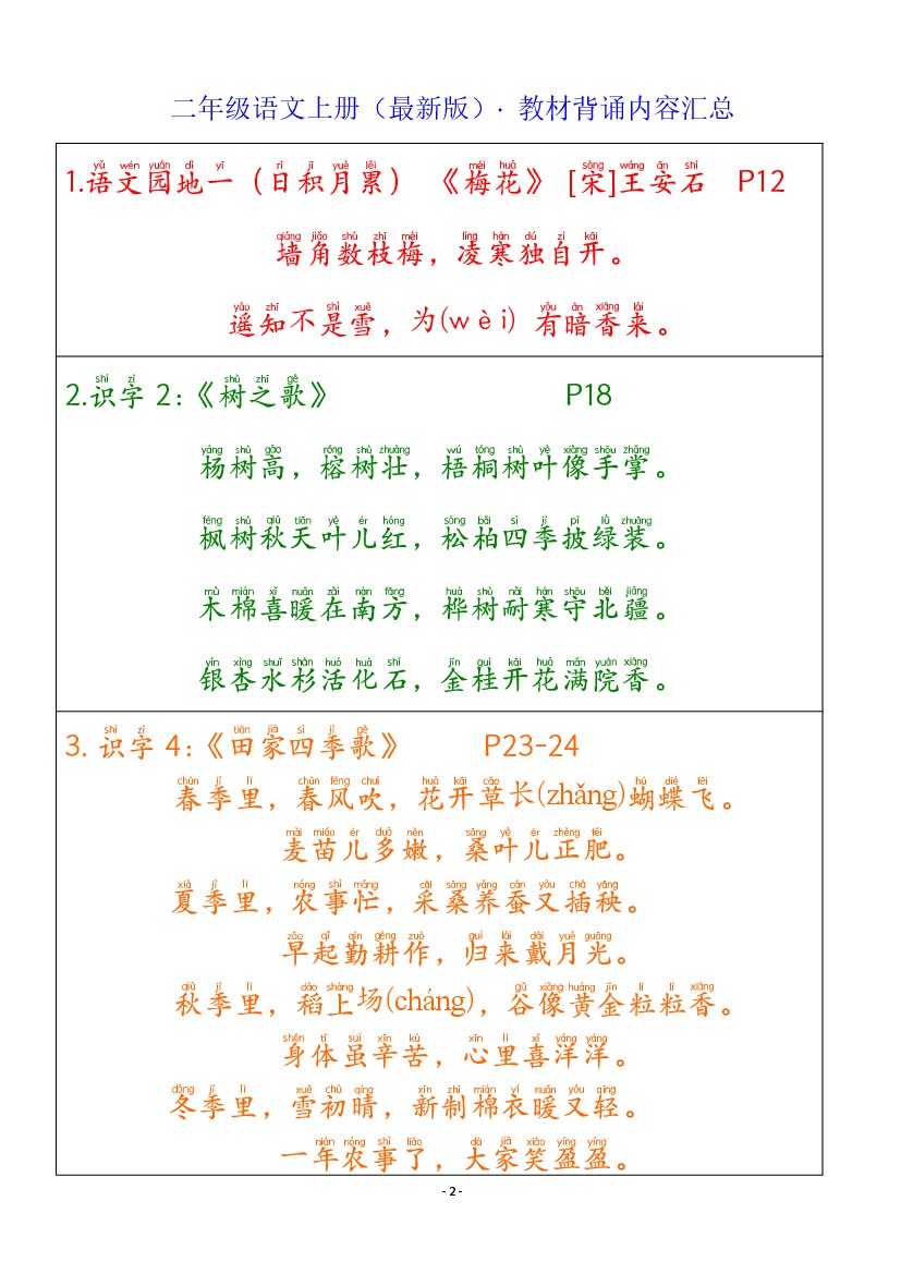 小学 25新版二上语文·教材必背知识点汇总+打卡+检验