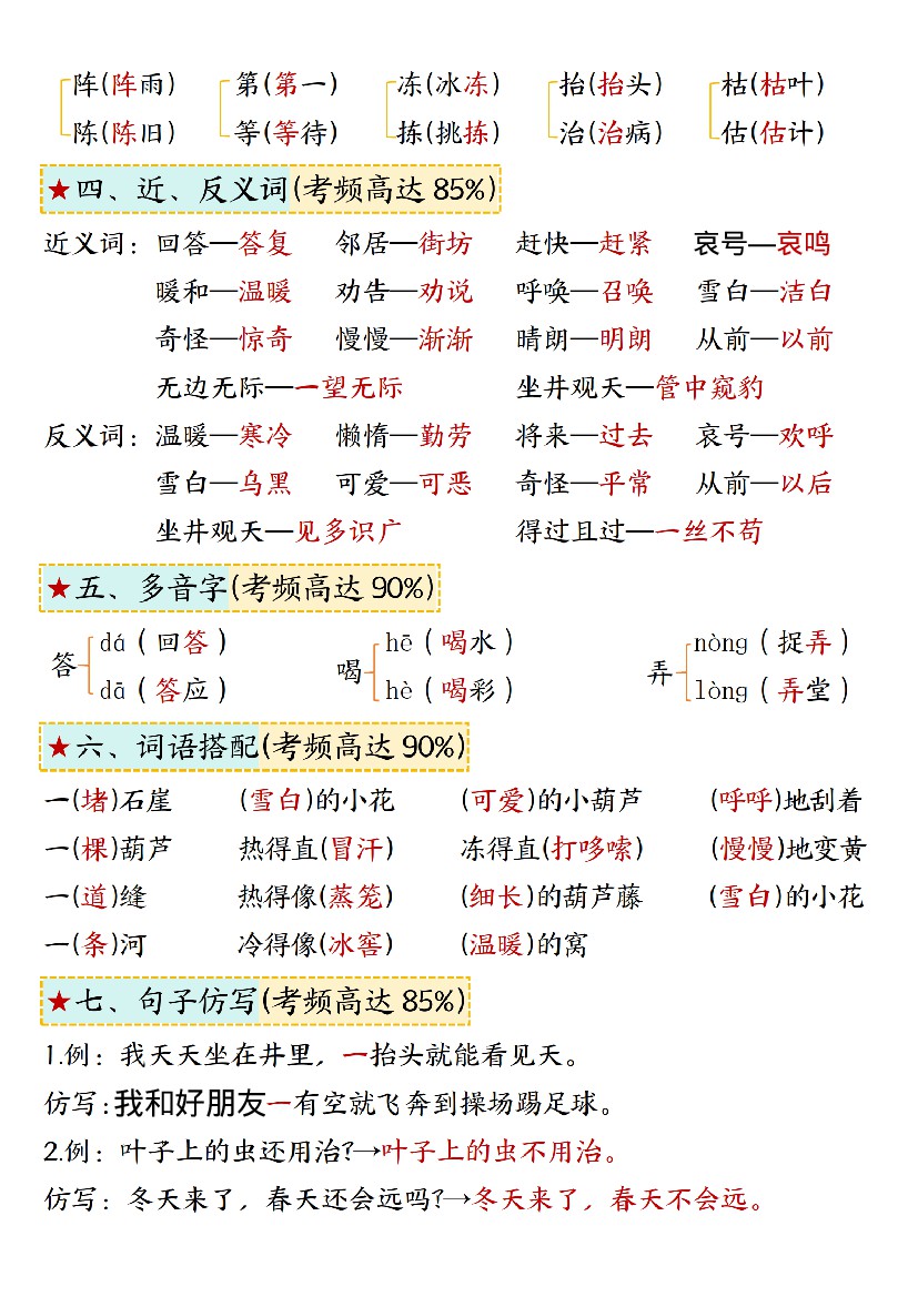 首页 > 全部 > 知识要点 > 二年级(上)语文 第五单元考点总结