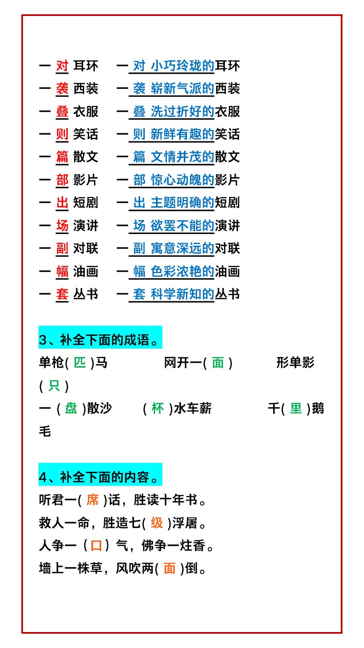 首页 > 全部 > 专项练习 > 【2025秋新版】二年级语文上册必考 量词专项练习,孩子掌握起来!