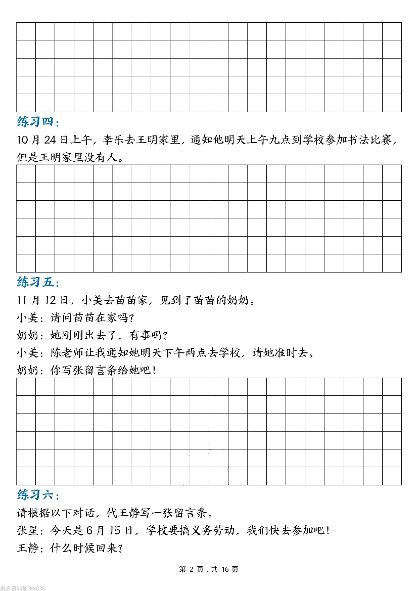 首页 > 全部 > 专项练习 > 二年级(上)语文留言条专项练习