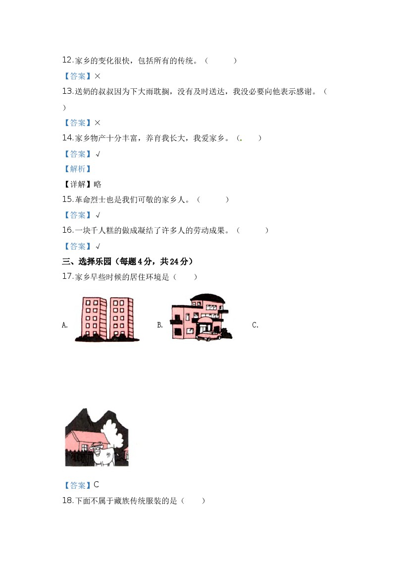 首页 > 全部 > 单元测试 > 第四单元 我们生活的地方(含答案)部编版道德与法治二年级上册单元测试-