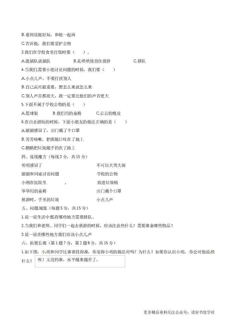 首页 > 全部 > 单元测试 > 第三单元 我们在公共场所(含答案)部编版道德与法治二年级上册单元测试-