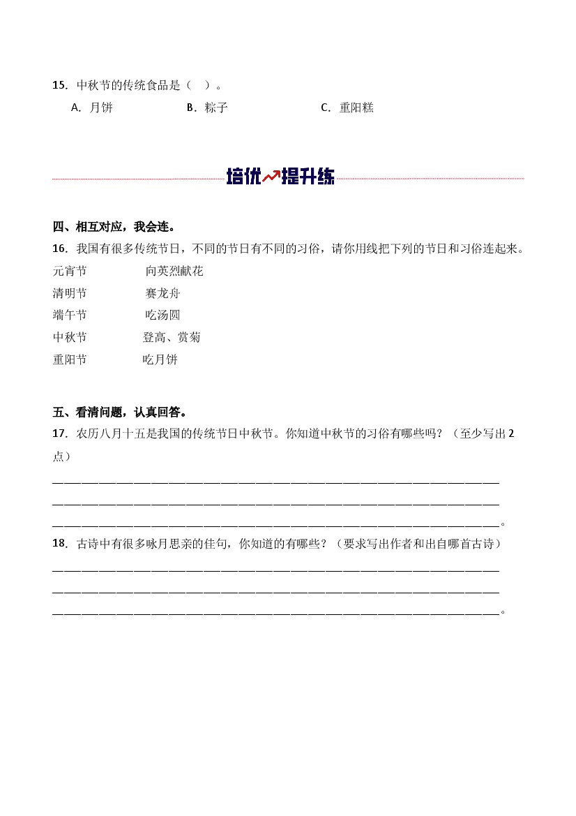 首页 > 全部 > 课时练习 > 25秋二年级上册道法同步练习第3课 团团圆圆过中秋(学生版)