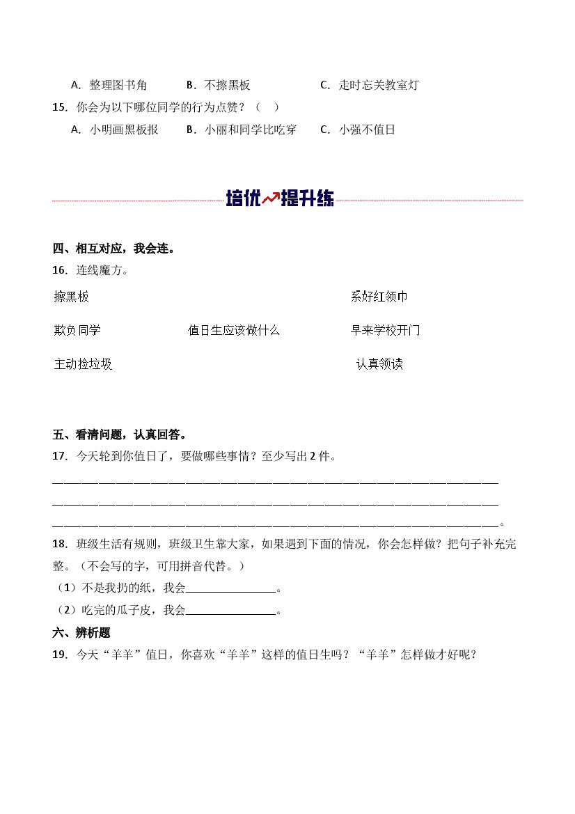 首页 > 全部 > 课时练习 > 25秋二年级上册道法同步练习第7课 我是班级值日生(学生版)