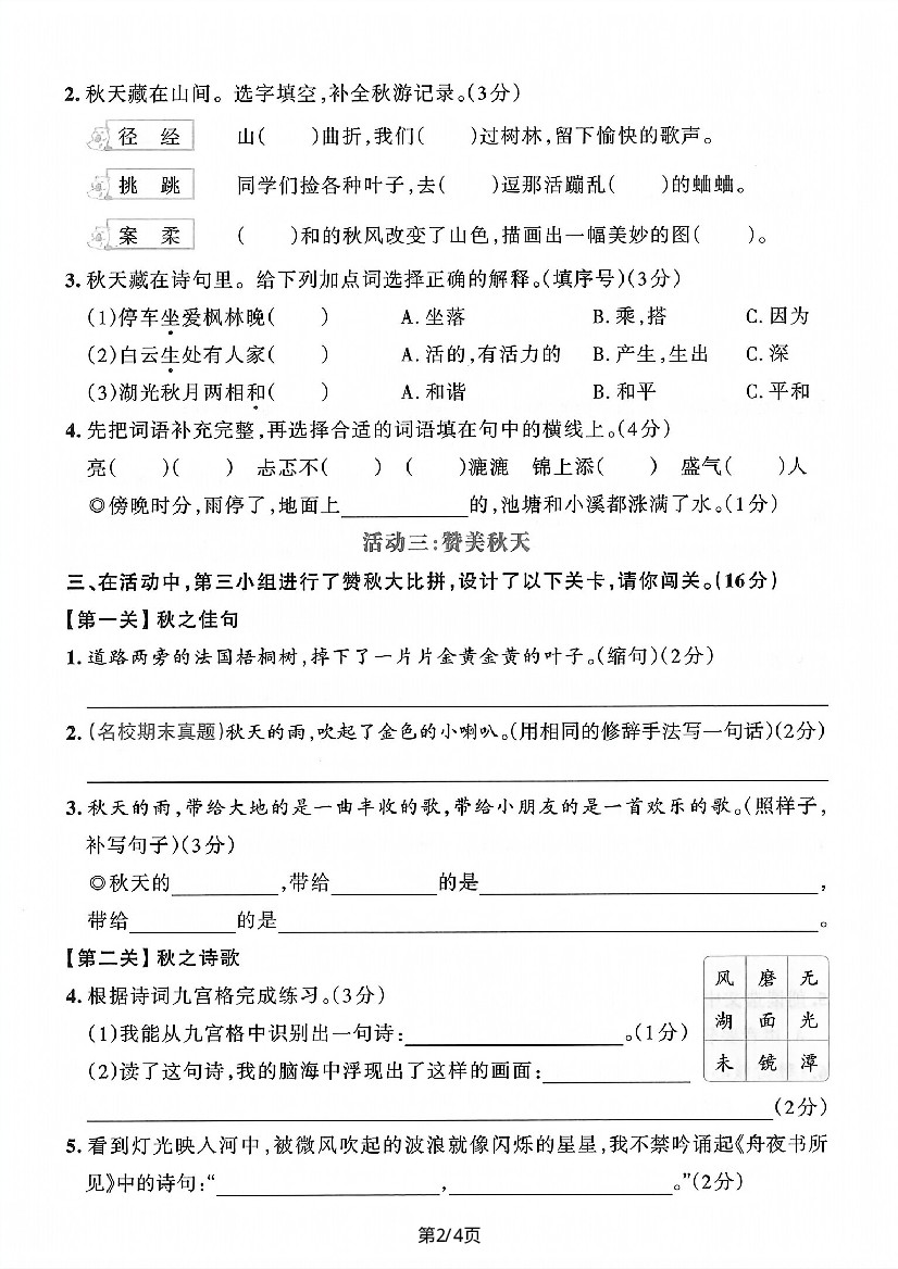 小学 25年三年级上册语文第二单元综合素养卷-金秋时节